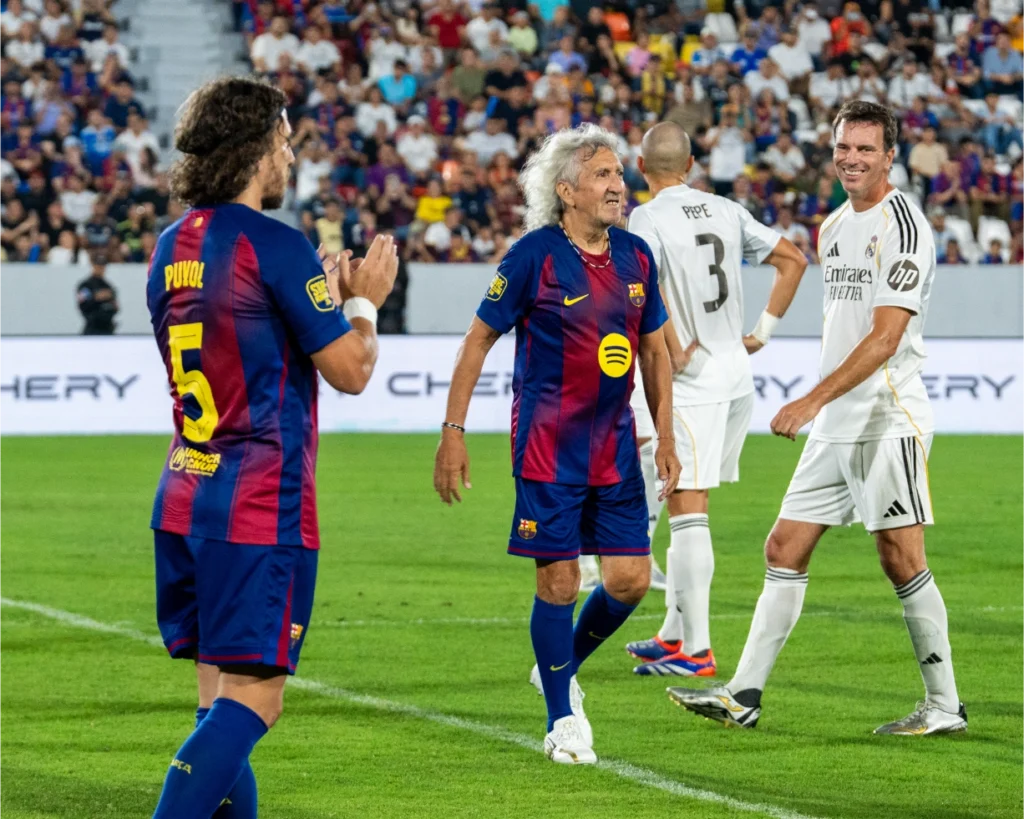 The ‘Mágico’ González wore the Barça Legends jersey in a match against Real Madrid Legends organized by NSN